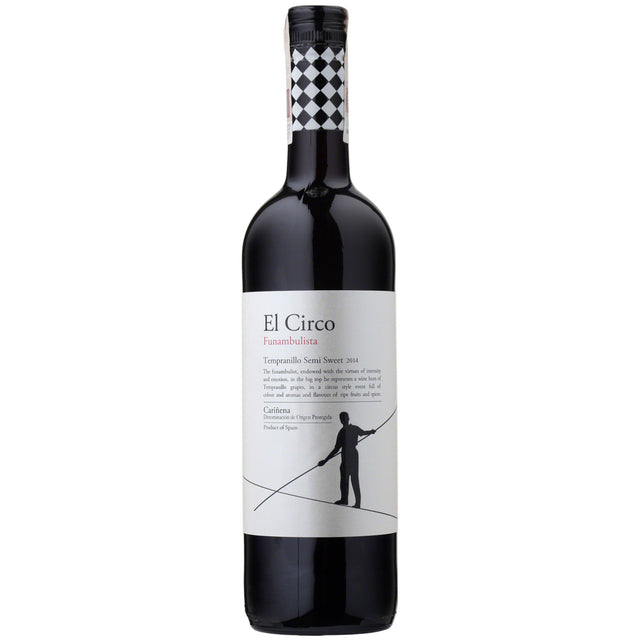 Producido en la región de Cariñena, España, El Circo Funambulista Tempranillo Semi Sweet ofrece un perfil afrutado con un toque de dulzura natural que lo hace fácil de disfrutar. Inspirado en la figura del funambulista, combina suavidad y vivacidad, ideal para quienes buscan un vino ligero y versátil para cualquier ocasión.
