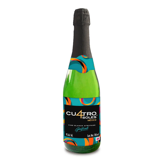 Cuatro Soles Brut Fruity Sparkling Wine 700 ml is a vibrant expression of the Mexican spirit, crafted for those who enjoy a fresh, light, and fruity sparkling wine. Soft, fine bubbles surround an aromatic profile that combines notes of tropical and citrus fruits, offering a refreshing and versatile experience. Ideal for celebrations, aperitifs, or simply to toast with style and authentic flavor.